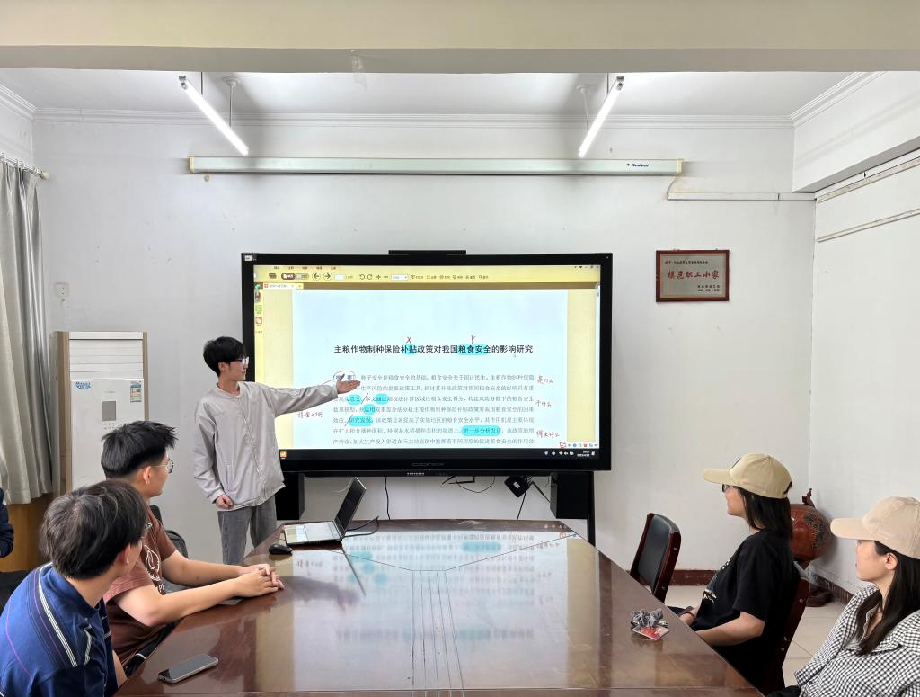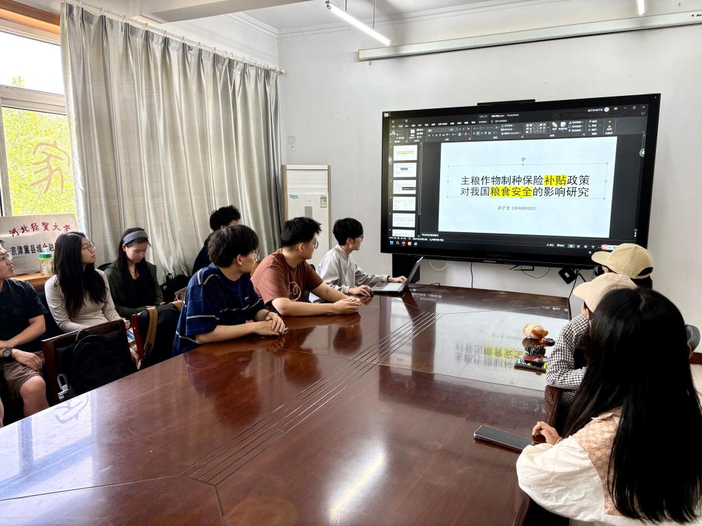 4月23日上午十点,9778818威尼斯在三办党务会议室举办第五十七期融道论坛研究生沙龙活动。本期论坛由赵子龙同学主讲,分享主题为《主粮作物制种保险补贴政策对我国粮食安全的影响研究》,十余名研究生参加。