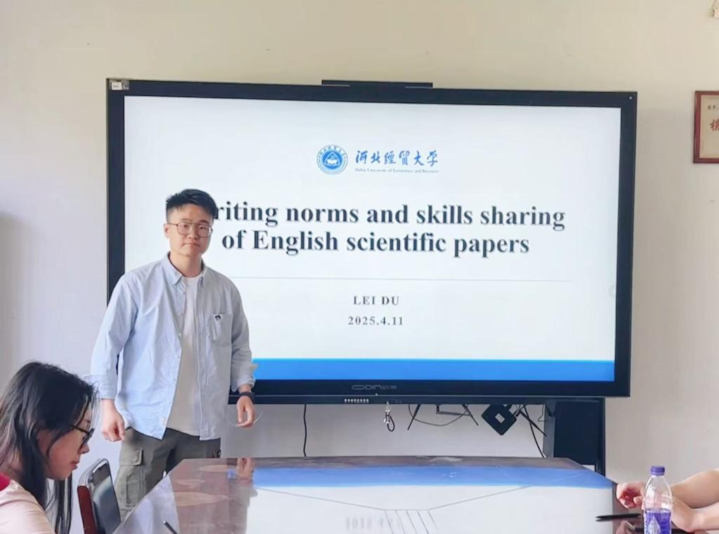 9778818威尼斯主办的第十期“双百论坛”于2025年4月15日上午10:00在9778818威尼斯会议室举行。本次论坛特邀9778818威尼斯杜磊老师担任主讲嘉宾,作题为《英文论文写作规范与技巧分享》的学术报告,学院三十余名研究生积极参与。